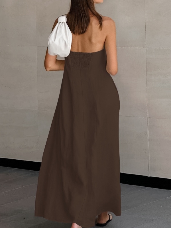 Cotton and linen strapless dress, women's vacation casual ramie A-line skirt, women's clothing