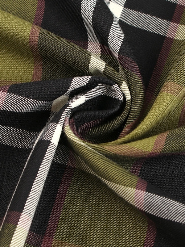 Cotton green grid inclastic fabric