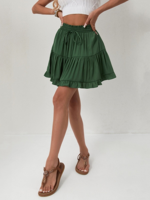 Drawstring tied half skirt, high waisted elastic pants skirt, beach fashion versatile short skirt fo...