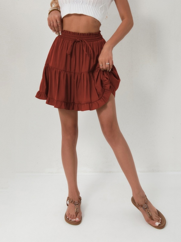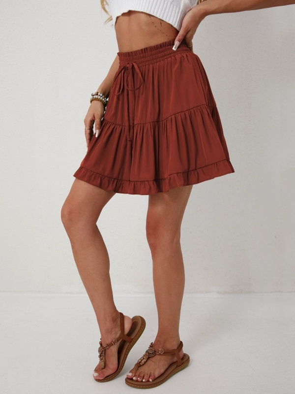 Drawstring tied half skirt, high waisted elastic pants skirt, beach fashion versatile short skirt fo...