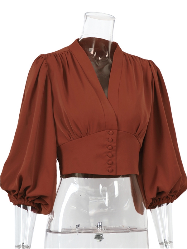 French V-neck Women's Shirt European and American Palace Style Lantern Sleeve Slim Long Sleeve Shirt