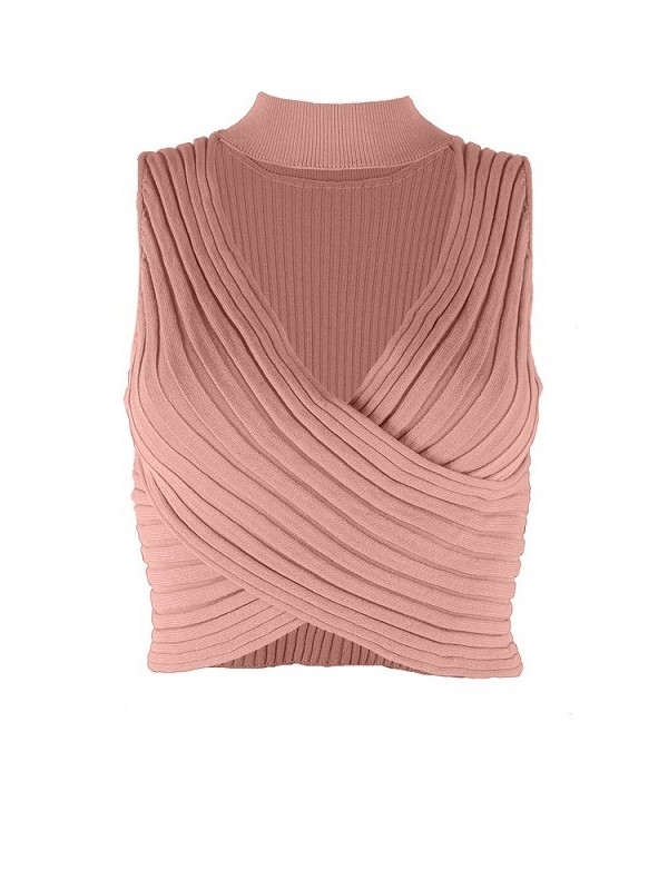 Sexy cross cropped short knit sweater sleeveless halter neck wrapped chest low-cut women's vest