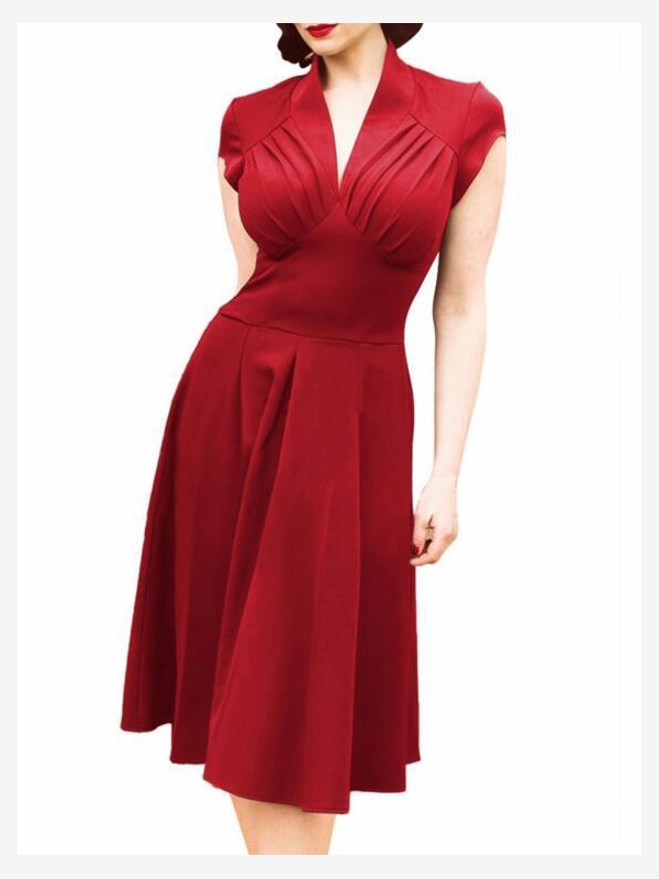 V-neck, short sleeve, waist closed, slim, swing skirt, pompous dress
