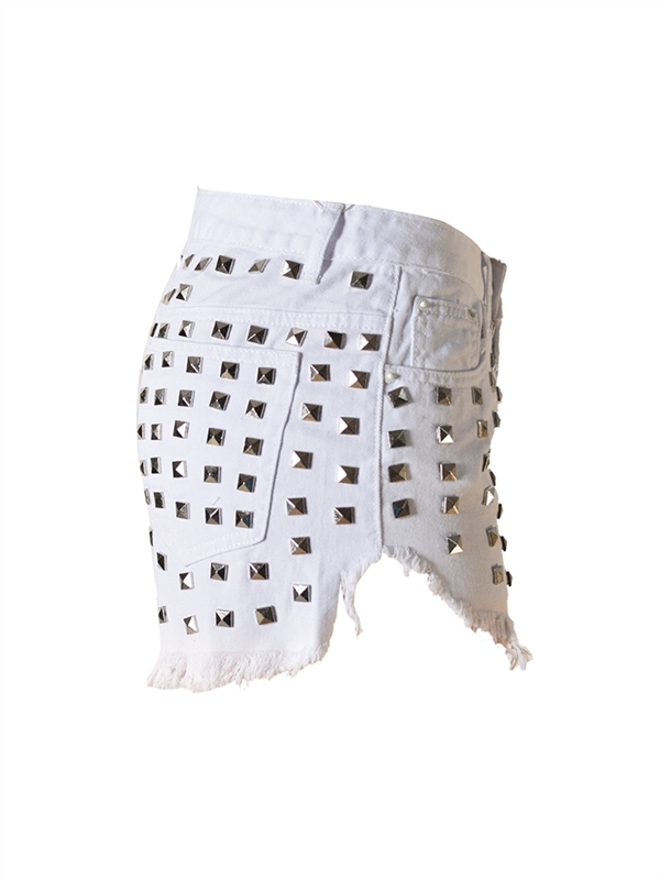 Women's denim high waist hot pants with ripped rivets