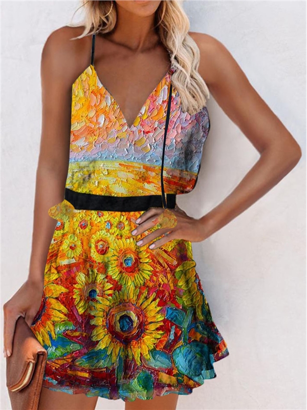 ✿ Features: Sleeveless, Mid-Length,High Waist, A Line Swing Dress.